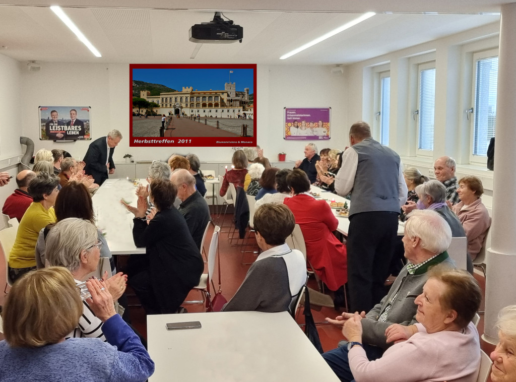 Zu unserem Videovortrag Italienische Blumenriviera mit Monaco, Nizza und Cannes fanden sich mehr als 30 Naturfreunde in der Billrothstrasse 34 ein.Anschließend wurde das gesehene noch bei einem kleinen Buffet besprochen.Werner Knorr dankt allen Gästen für ihr Interesse und verspricht, auch im kommenden Jahr wieder einen ausgewählten Reisefilm aus den 30 Jahren, die er als Fotograf mit SeniorenReisen unterwegs war, zu zeigen.