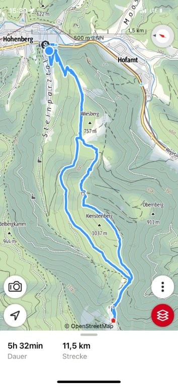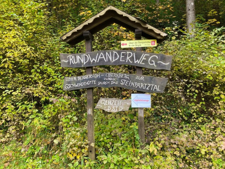 Unsere Wanderroute führte uns: von Hohenberg – Wiesberg – Kiensteinberg – Gschwendthütte – Forststraße – Simerlweg – Wiesberg – Hohenberg Markt.