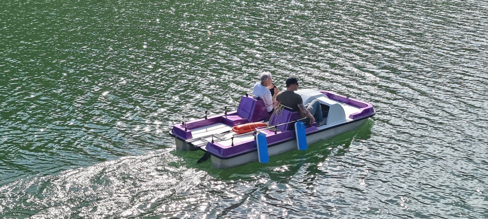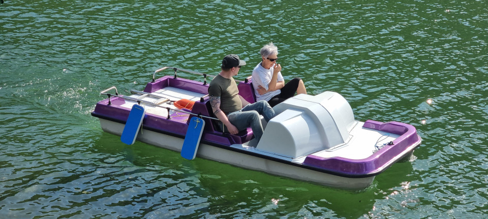 Ein Katamaran, der leicht zu besteigen ist und durch seine 2 Rümpfe - ohne zu schwanken - die Besucher über das Wasser schippern kann.