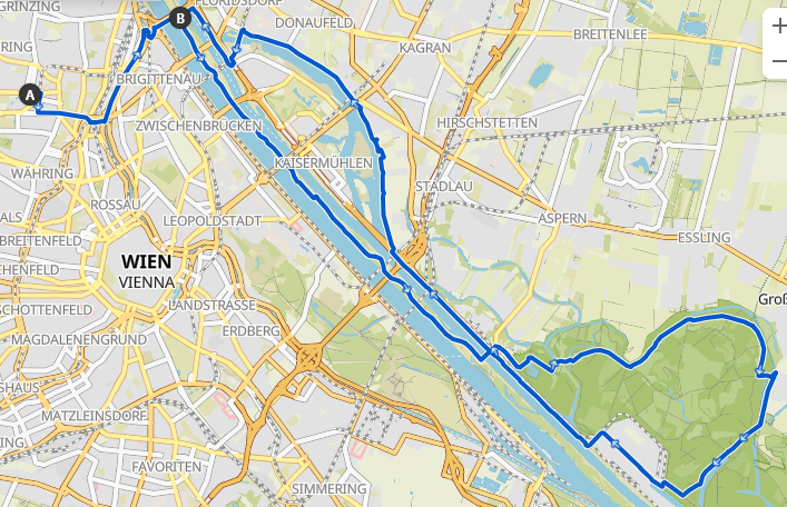 Treffpunkte:10:00 - T1 - S 45 Station - Krottenbachstrasse, F. Ekkamp10:15 - T2 - U6 Station - Neue Donau, W. Rehberger10:25 - GT - Nordsteg (gemeinsamer Treffpunkt)P1 - Pause - Uferhaus StaudiglP2 - Oase - NF Alte Donau